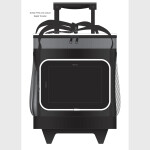 Large 16L trolley cooler bag with a two-stage pull up handle and robust dual wheels. It has thick PE foam insulation encased in a waterproof PEVA inner liner and the outer construction is 600D polyester with decorative ripstop nylon trim. Other features include a zippered top closure, two large side pockets, a large zippered front pocket, woven carry handles with a Velcro cuff and trendy elastic lacing which is ideal for holding a sweater or light jacket.